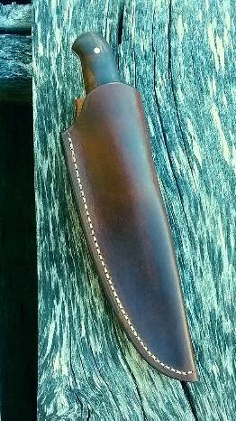 Our shop made, hand sewn Bridle leather sheath comes with each Slim Hunter knife!